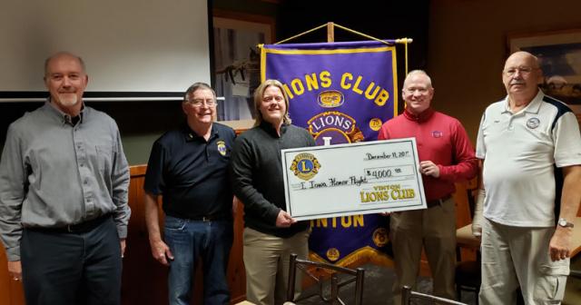 Every November, with the assistance of local Boy Scout troop 47, the fire department and Fareway the Lions Club has a chili supper on the same evening as the Holiday Parade that kicks off the Christmas season in Vinton.The club raised $4,000 that was donated to support the Eastern Iowa Honor Flight.