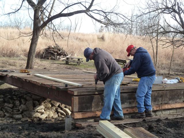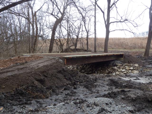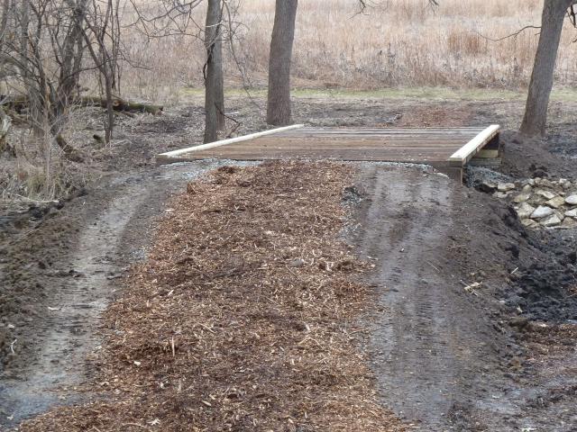 Benton County Community Foundation Grant and SACG funds have been used to build a new bridge that can be used by students as well as to get the mowers out to the prairie. It's taller and stronger and will be easier to maintain. SACG members Jay Herman, Lonnie Speckner and Greg Peacock developed plans and led the effort, each donating considerable time to the project. Other SACG members and community volunteers assisted with various phases of the project and it is great to have this completed for the school and community's use!! The bridge is located on the Prairie Forest Trail and there are plans to sponsor some trail and prairie events in the future. Grant funds will also be used to place a sign about the trail and prairie near the school concession stands. It's quite muddy right now, but wood chips from the school’s old windbreak are being placed on the trail so feel free to stop by and check it out!