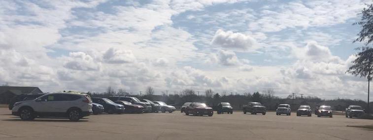 Usually, there’s a packed house for a wedding to congratulate the couple, but knowing that wouldn't happen another couple in their circle of friends thought that the day shouldn't go unacknowledged. Calling friends of the couple, Paula Happel set about rallying guests to drive to the parking lot, at approximately 11:15. Jim, the other half of the duo called me. "I think people need some good news to talk about."