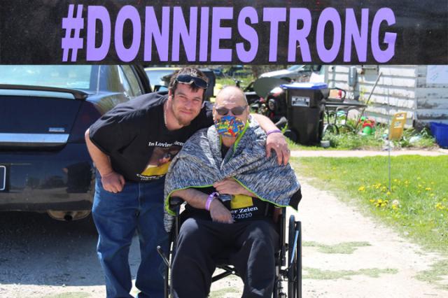 On Friday afternoon a group of his family and friends gathered to surprise his with a small welcome home parade and to wish him well. It wasn't a warm day for it, but Donnie braved the few minutes outside for his family and friends. Several of the cars, including Donnie's sported the message, "DonnieStrong" as a way to show their support for their hero.