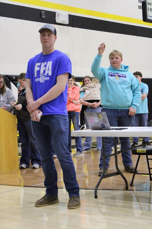 Thursday, March 27th was the Vinton-Shellsburg FFA Chapters annual Volunteer Auction. 35 high school FFA members and 2 advisors signed up to be auctioned off by Sam Finnegan to volunteers within the community.