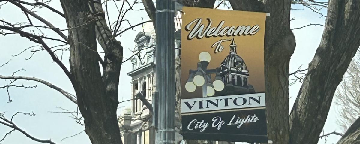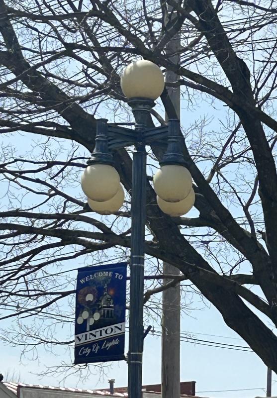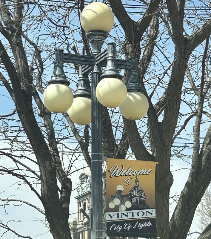 As part of the Iowa's Living Roadways Community Envisioning Program and Trees Forever, Vinton was presented with several ideas to beautify Vinton. Scott Wirth has been taking the lead on this project. Downtown Vinton now has flower pots and banners hanging on some of the street lights.