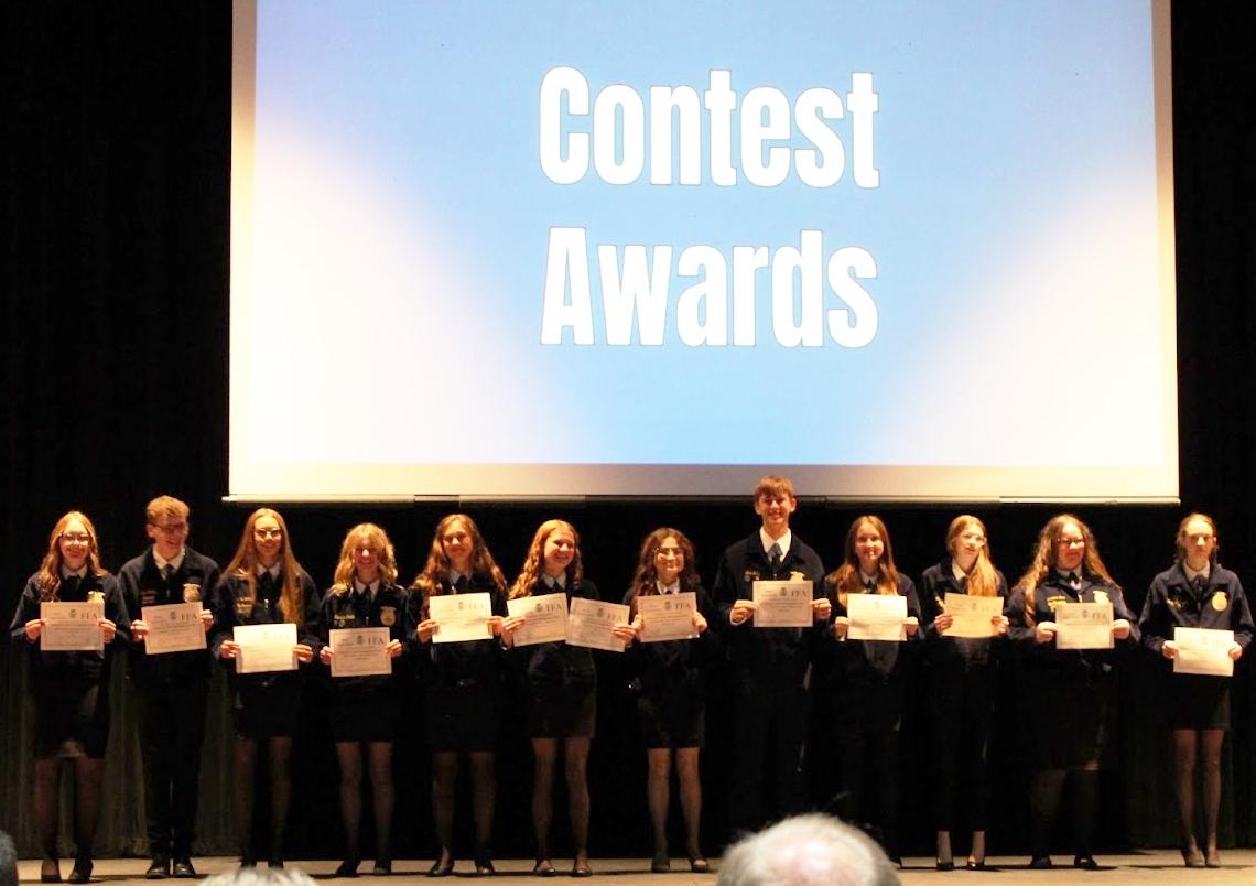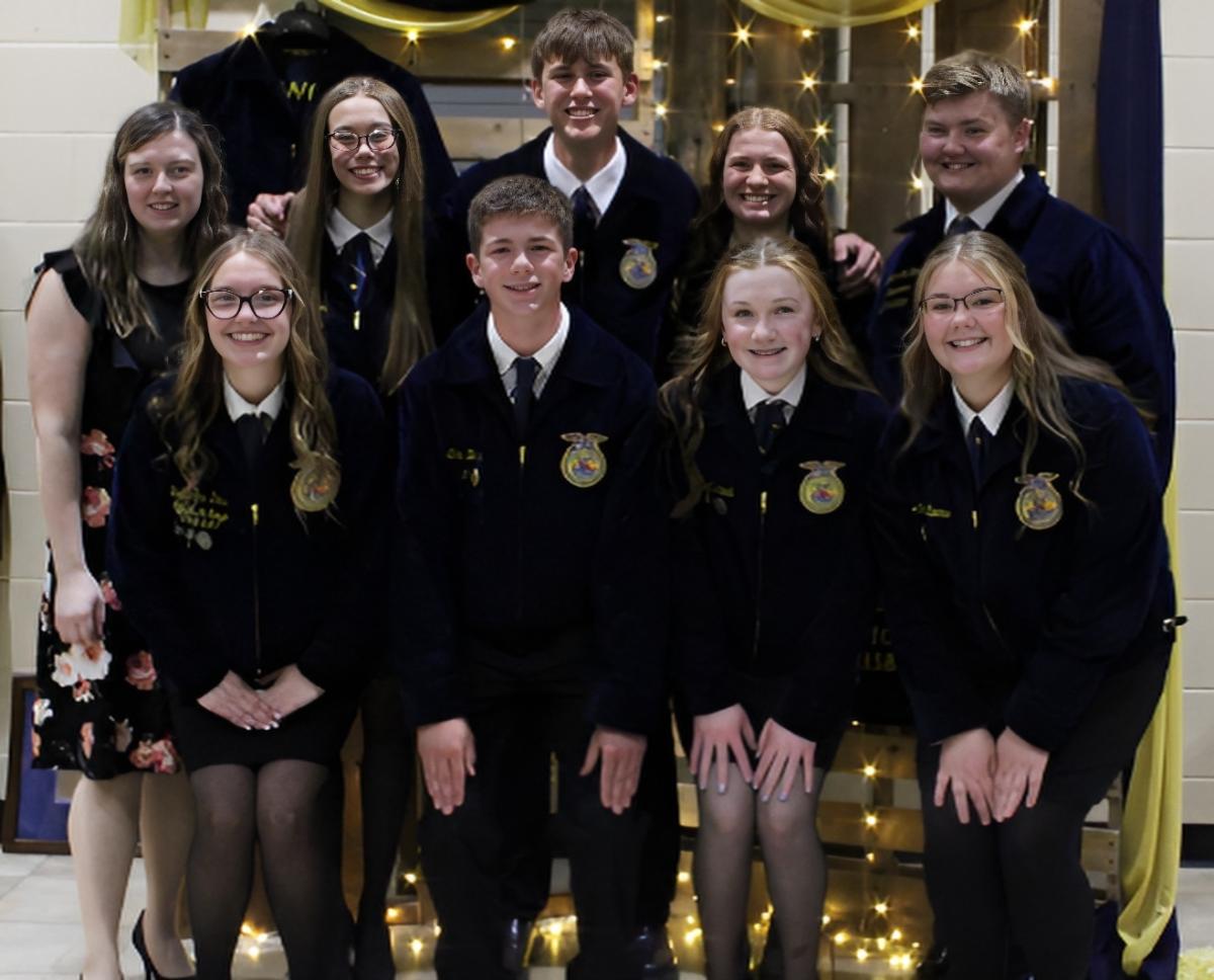 Awards and certificates were given to participants in Career Development Events and Leadership Development Events throughout the year and several members were recognized for serving above the chapter level on committees, offices, band, in addition to their participation in the county and state fair. Seven upperclassmen were recognized for receiving their Iowa Degree, including: Jazmyn Dods, Andrew Pingenot, Izzie Birker, Brody Waters, Cooper McClintock, Will McKenna, and Alana Fleming.
