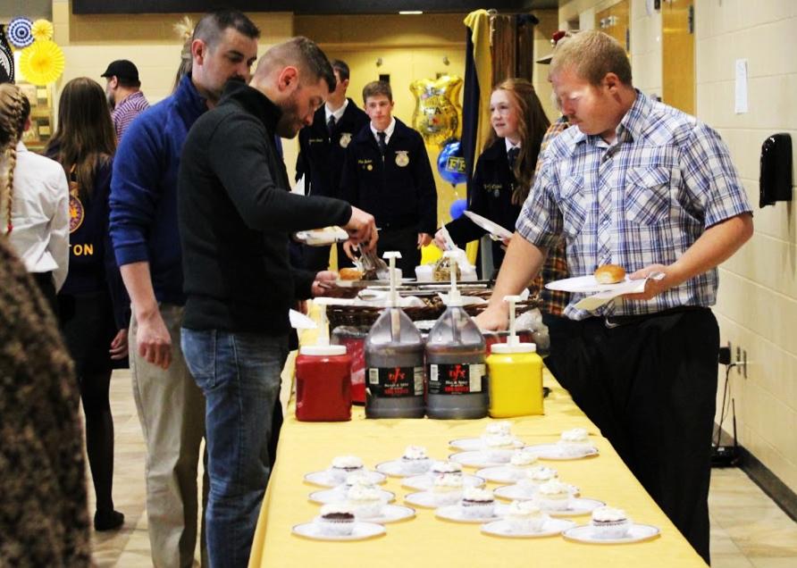 The annual Vinton-Shellsburg FFA Awards Banquet was held on Saturday, March 3rd. President Andrew Pingenot opened the evening by welcoming guests and thanking them for their support. Officer at Large Bri Dulin gave the blessing, and the meal was catered by Merchant's Grilling with cupcakes from Susan Meyer, and soda bar run by the Alumni & Supporters members who also conducted a silent auction during the dinner to raise funds for chapter activities.