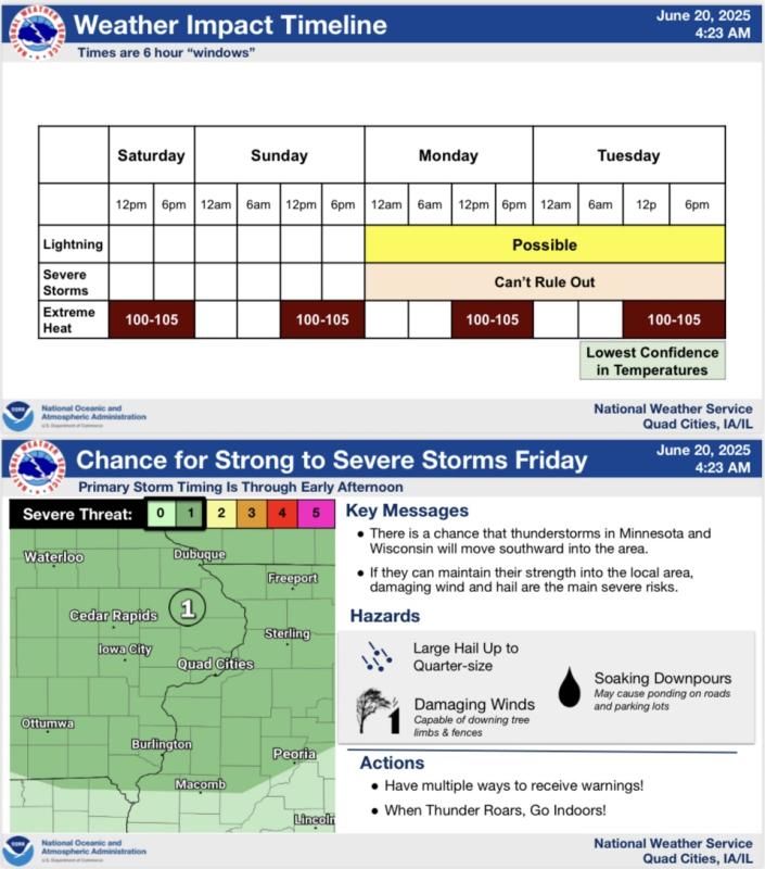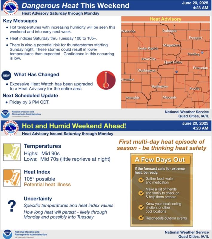A quick note that confidence has increased in heat this weekend and as such we have issued an Extreme Heat Watch for that period for all of eastern Iowa and Rock Island and Mercer Counties in Illinois. If trends continue, some heat headlines will likely be issued for the rest of the area. There are signals this heat may also continue into Monday and possibly Tuesday.