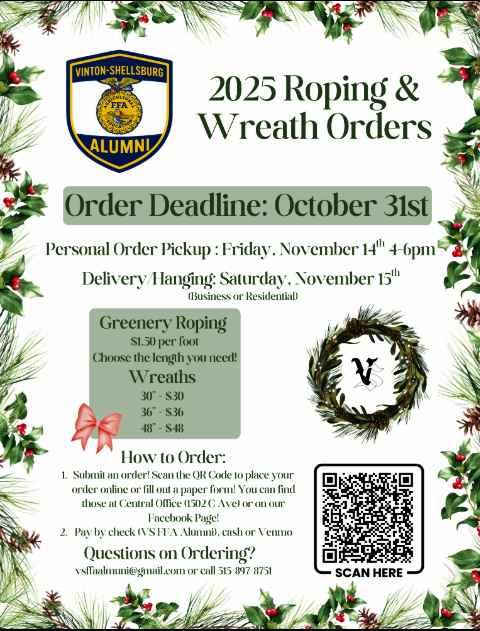 It's time to order your 2025 Christmas Roping & Wreath Orders! Order Deadline is October 31st.