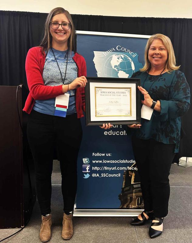 This is a statewide honor that recognizes Kelly’s exceptional work in bringing history, government, and civic engagement to life for her students. Her passion for connecting classroom learning to the real world and inspiring students to think critically about their role in society truly stands out. She received the award today at the ICSS annual conference.