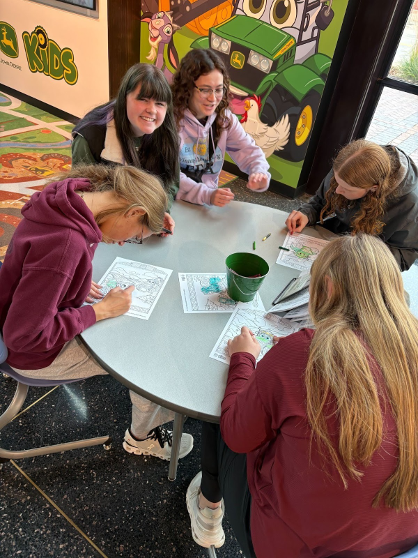 From October 28th to November 1st, 19 Vinton-Shellsburg FFA members traveled to Indianapolis, Indiana, for the 98th National FFA Convention & Expo, joining thousands of students from across the country to celebrate leadership, agriculture, and the FFA spirit. The trip began early Tuesday morning with a stop at the John Deere Pavilion in Moline, Illinois, where members toured exhibits and learned about the history and innovation behind one of agriculture’s biggest brands. Afterward, the chapter made their way to Indianapolis, where they settled into their hotel and participated in a quiz competition before enjoying dinner together at Buca di Beppo sponsored by the Vinton-Shellsburg Alumni & Supporters Chapter.