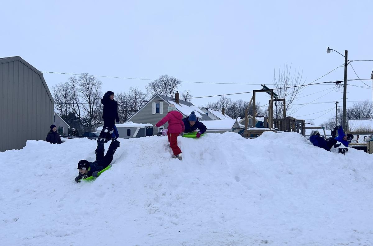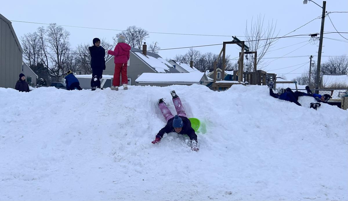 The parking lot at Harvest 365 Church looked like a giant had scooped out a bite of the earth and left a perfect little mountain behind. The guy responsible for plowing the parking lot pushed the snow into one almost-mountain-sized pile in one corner, and turned it into the best sledding hill anyone under five-feet-tall had ever seen.