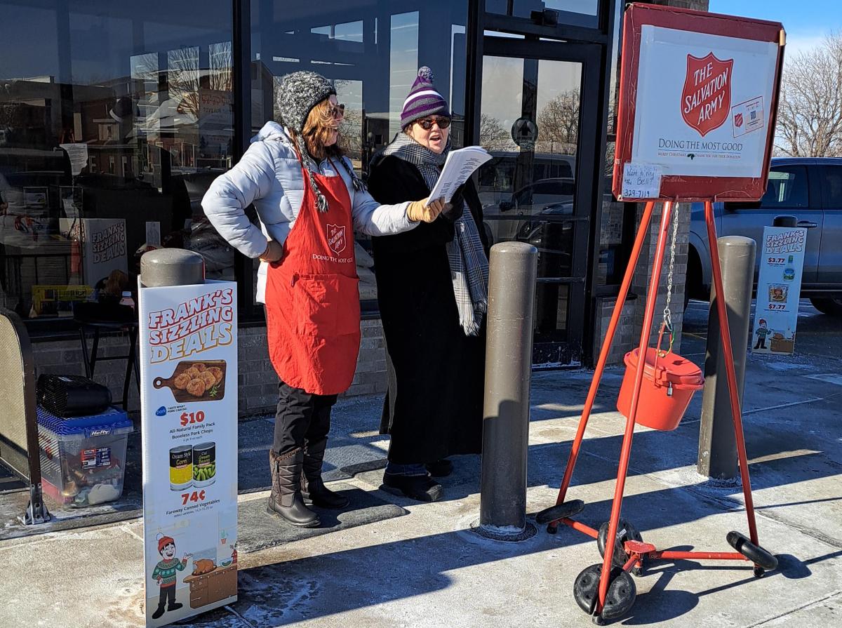 Two retired teachers from Center Point - Urbana, gave it their all while ringing the bell for the Salvation Army of Benton County. The two teachers entertained shoppers by singing carols accapella in front of Fareway!