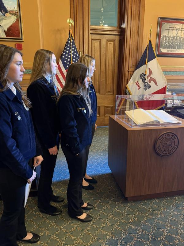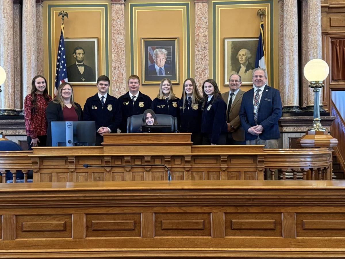 Benton Community FFA members attended the 41st FFA Legislative Symposium at the Iowa State Capitol. Members visited the Secretary of State’s Office, learned about Iowa’s Constitution, and took in the beauty of our state capitol building while learning how bills are introduced and move through the legislative process.