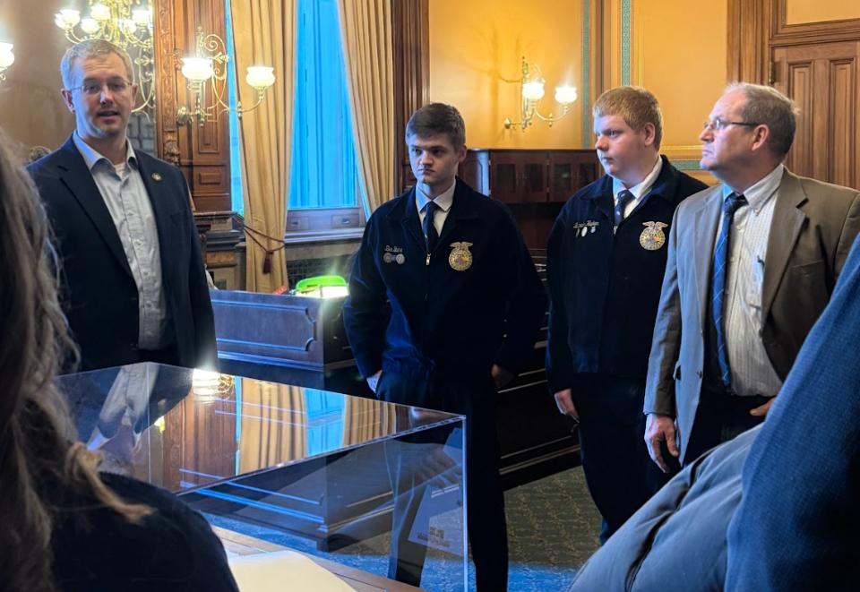 On Wednesday, January 21st, seniors Ben Buhr and Braedon Hepker attended the FFA Legislative Symposium with chaperone Chad Newton.