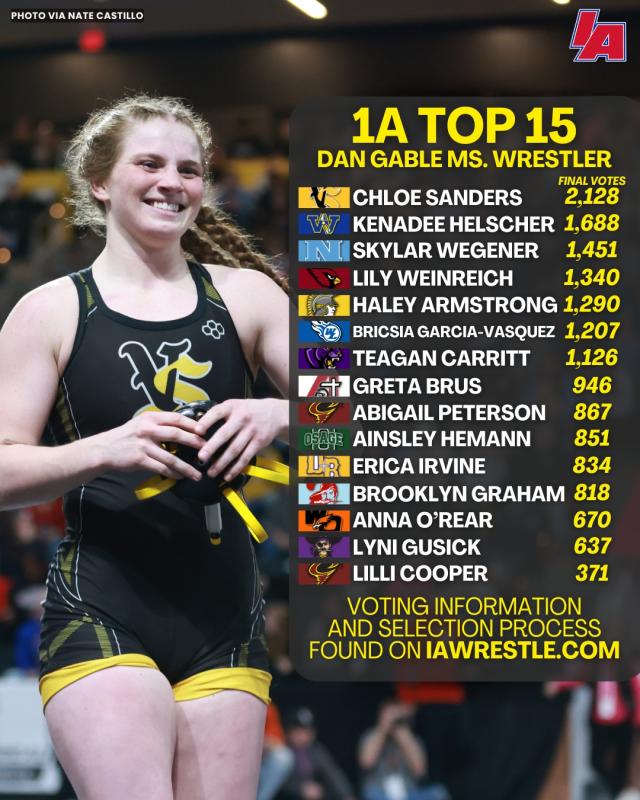 Go Vote for her to be the winner in the - Class 1A Dan Gable Ms. Wrestler of the Year!