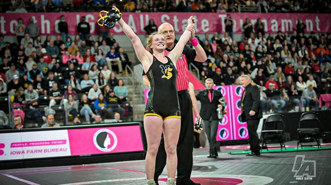 Chloe becomes Vinton-Shellsburg’s first-ever female wrestling state champion, and only the second state wrestling champion in school history, joining her brother, Gabe Sanders.