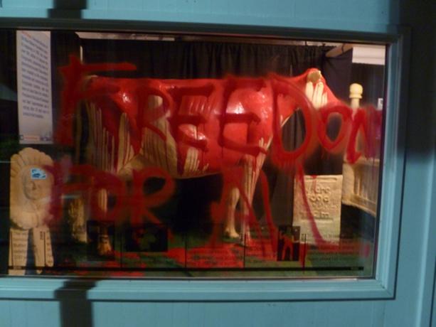To: The people who painted the Iowa Butter Cow Red this past weekend, (as well as to whoever it was who put the "Go vegan" message on the Butter Cow at the State Fair in 2011):