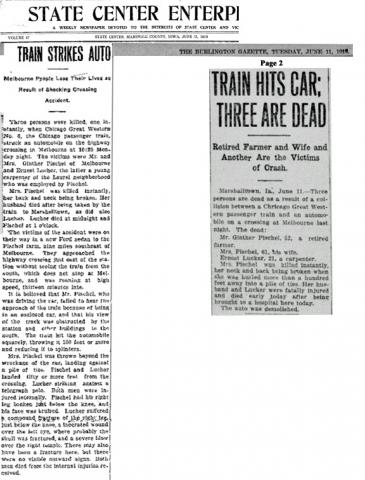 I simply said, "Now I'm not from here, but I wanted to stop by and see if you know anything about my great-great grandparents, Gunther and Wilhimenia Pischel.They were killed by the Chicago Great Western No. 6 at a railroad crossing in Melbourne, on June 10, 1918. "
