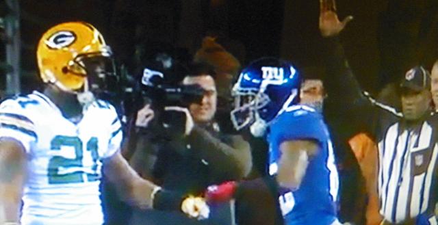 Woodson made a great play, but Nicks made an even better one, and came down with a touchdown pass. As his teammates gathered around him, congratulating him, Woodson also walked by. The beaten cornerback extended his hand, inviting Nicks to accept his congratulations for the great play via a "fist-bump." Nicks obliged him. Cameras clicked; television commentators also noticed.