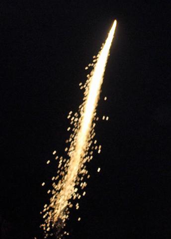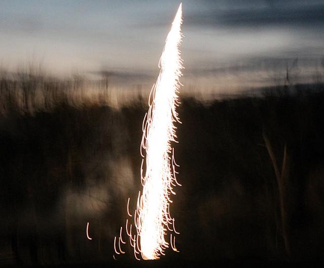 Yedlik made a large shell with chemicals designed to create a green burst in the sky – and green it was. Fellow IPA member Scott Anderson made an orange one. They also made few other fireworks, and several other IPA members also came with shells ready to display. Members of the Wisconsin Pyrotechnic Arts Guild – winners of 10 straight Pyrotechnic Guild International (PGI) club championships – brought many of their unique rockets.