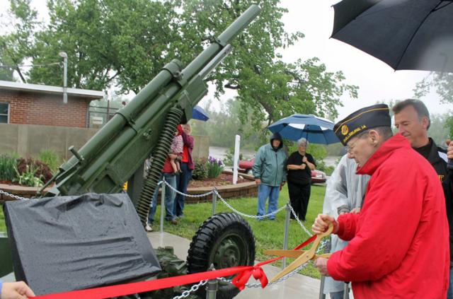 Larry is also a Parkinson's patient. Those who attended Monday's ceremony watched as Larry slowly walked from the car to the Howitzer, where he cut the ribbon, and listened as VPRD Director Duane Randall briefly recited the history of the Howitzer project, and Larry's donation that funded the cost of moving and painting the artillery piece.