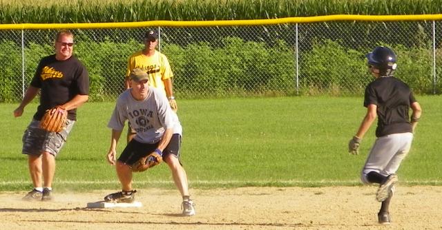 The dads got an early lead, using aggressive base-running. But the boys came back and the game ended in an 8-8 tie. Coach Rosenberry did the pitching for the dads team; Boisen played catcher. The players took advantage of the situation to remind the coaches of many of the instructions they had heard from them during the season. And of course, there was a little more taunting than usual between the dugouts.