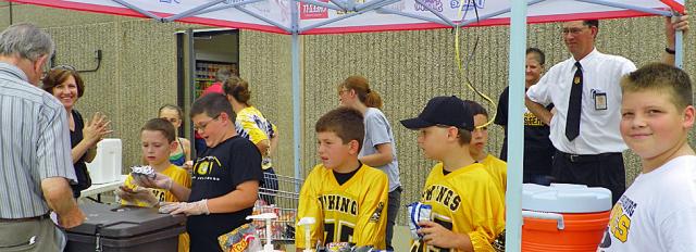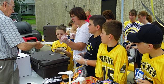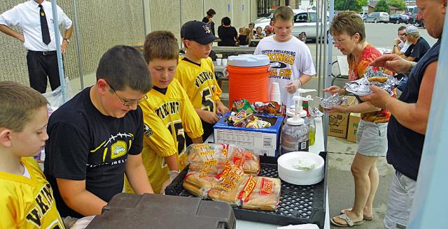 Dozens of young football players in grades 4-6 served lunch at Fareway on Saturday to raise funds for equipment and other expenses for their youth football teams.