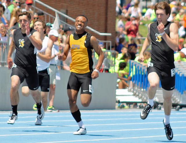 The three started fast and eventually pulled away from the pack, with Bartz ahead by a step as they reached the middle of the final stretch. Frost eventually gained a step on Barnes and pulled even with him, and then leaned forward to win the race by .03 seconds. When the results from the first heat were figured in, the CPU junior and the two Viking seniors were still the fastest three runners.