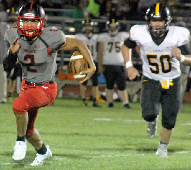 The Knight defense recorded 21 tackles for loss while the offense scored seven touchdowns while compiling 364 yards of total offense. Senior Isaiah Vaughn led the Knights with 162 yards on 17 attempts (a 9.5 yard per carry average) while scoring four touchdowns. Junior QB Troy Hanus completed 11 of 13 passes for 147 yards and two touchdowns. Kicker Dakota Hora was successful on 6 of 7 PAT attempts.