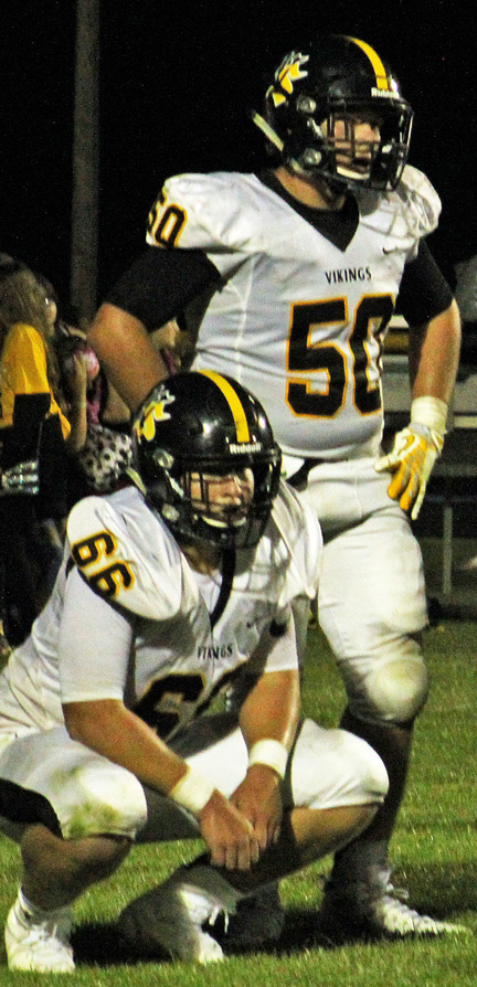 Isaac Wiley (66) and Cole Overton (50) have been among VS leaders in tackles this season, and led the defense at S. Tama.
