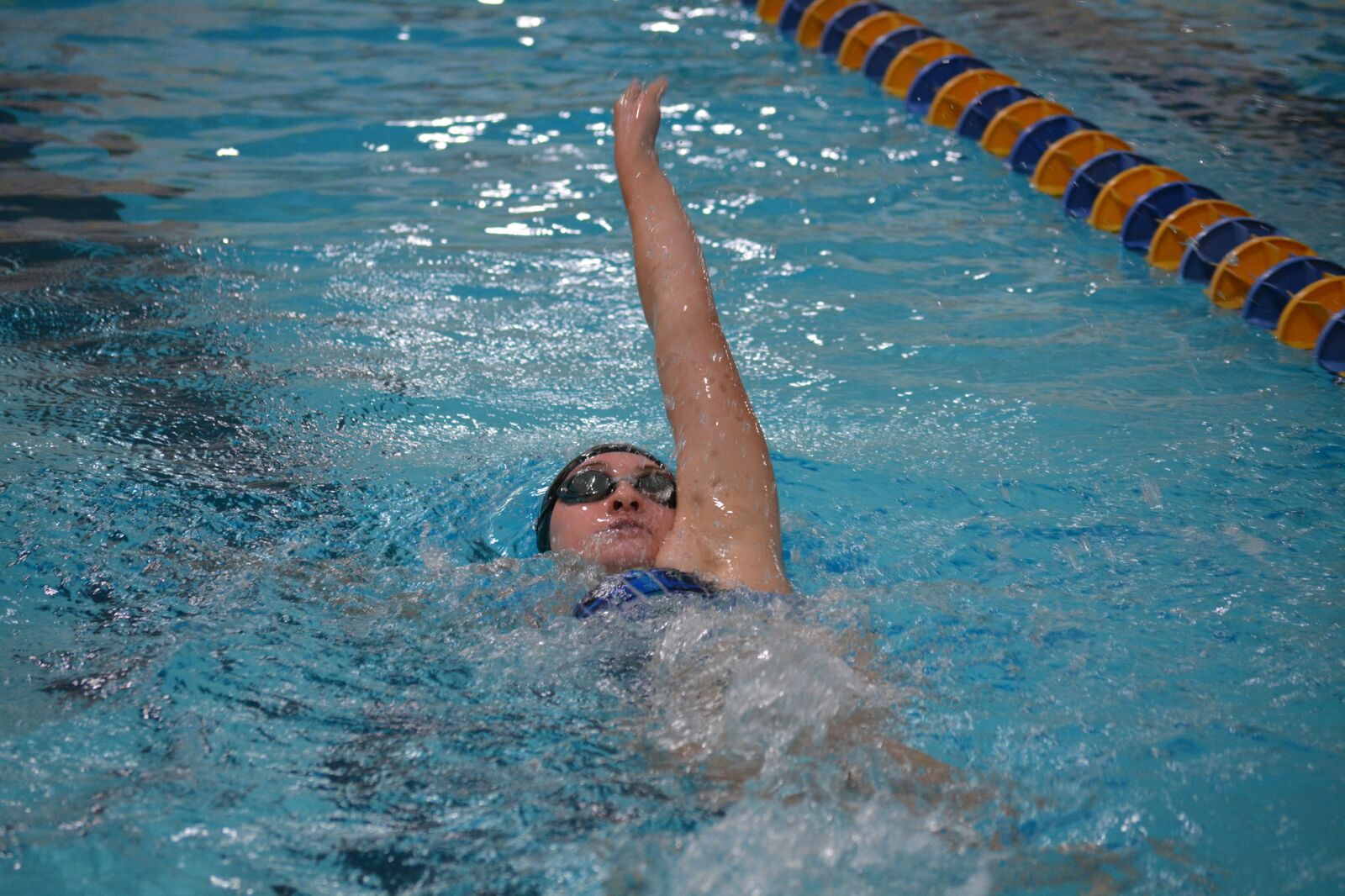 "Lizzie Moore, Clarissa Carolan, Amanda Cardenas, and Natalie Tecklenburg (that's half our team) all swam events back to back, and did very well! The other 4 girls swam events with only 1 in between theirs. Arabella Shepard improved her own 500 freestyle record to 5:39.54. Natalie Tecklenburg, Amanda Cardenas and Geordyn Webster also dropped time in their key events. All in all, it was a night of solid performances - it just didn't have the end result we wanted."