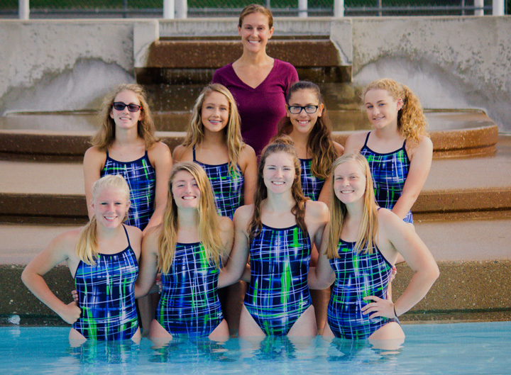 Coach Ashley Hesson with the VSU swim team, which ends its season with one member competing at State and Hesson sharing conference Coach of the Year honors.