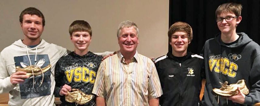 At the wrap-up banquet, Frazier honored the seniors with a unique tradition: A bronzed running shoe. He also recognized the last athlete to advance to the State meet under his leadership, senior Cole Tharp.