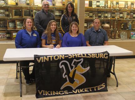 For Becca Steffen it was an exciting first day in the next step of her life. Rebecca Steffen signed a scholarship to play Volleyball at North Iowa Area Community College. Becca grew up around volleyball, with her mom Kelly as her coach and her older sister played as well. She played organized volleyball with her classmates from 4th grade on and then starting playing club volleyball in sixth grade. Her 14U year she began to understand what it took to play at the next level. Travis Butler, her club coach that year, took the time to work with her individually to help her develop the skills needed to be able to play at a higher level as a setter. As she entered her freshman year of high school, Coach Ruess utilized her as both a setter and hitter where she learned to love hitting as much as setting. The last couple years of volleyball, she has worked with her current club coach, Rick Blackwell. Blackwell has helped her develop as a hitter and emphasized what it means to work as a team. "Becca's passion is genuine. We have never pushed her to put in the extra time, she loves it and she will do whatever it takes to be better for her team. We are so excited to see her at the next level and are very grateful to those who have helped her along the way!" said Kelly Steffen of her daughter. Coach Michelle Stepanek said of Becca, "Becca has played for me for 4 years since she was a freshman, she has lead the team in all hitting & setting categories the last two years. She was voted MVP by her teammates this season. Becca has been looking at colleges since early summer & coaches come to watch her play to see if she will fit with their program. Becca was a powerful & huge impact player for our team. She loves the sport & will give you all she has on the court." "We are very excited to have Becca join our team. We have high expectations for our players on and off the court so we are looking for the best people to do the work. We really believe she will come in and make an immediate impact on our program and be able to run a fast tempo offense. Her great personality, work ethic and drive to succeed should make her an excellent student-athlete!" said Christ Brandt, head coach at NIACC. For pictures from the signing, you know the drill, click!