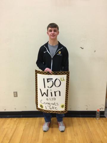 Vinton Shellsburgs Luke Radeke had a landmark win with his 150th win at the wrestling match this weekend at Central Dewitt.