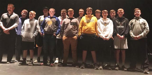 The 8th-grade boys met with Coach Womochil in the high school auditorium where the coach explained what will be expected from each of them as they sign to play football for the Vinton Shellsburg team.