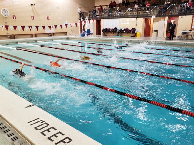 A fun way to end the regular season, the popular t-shirt relay was revisited. The 2 teams combined to make relays of both VSU and Williamsburg members, in which girls would swim in and then exchange baggy t-shirts between swimmers. Strategies were fine-tuned this go-around, which made for a fun relay to swim and to watch! Click to view Video courtesy of Ashley Hesson