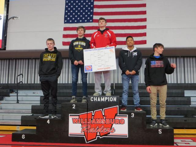 After a first round bye, Ortner opened his title run with a hard-fought 6-4 decision over Williamsburg's Chase Malloy, then capped off the day with a 2-0 victory over Benton's Wyatt Bieschke to take the title.