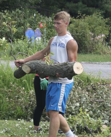 VINTON — They’re already working hard every morning at practice, but members of the Vinton-Shellsburg football team have been pulling double-duty as many Viking players and coaches have been out in the area helping residents clean-up after Monday’s derecho storm.