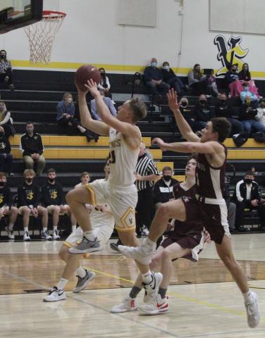 VINTON -- A wild fourth quarter, quite a few acrobatic defensive plays, and a raucous home crowd, just let of our Covid jail, still wasn't enough Friday night as Coach Joe Johnson's Vinton-Shellsburg Vikings dropped a heartbreaking 56-50 decision Friday night at Garrison Fieldhouse.