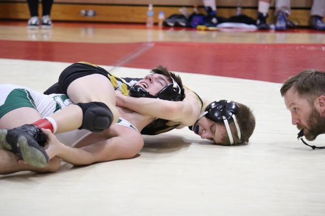 Round 5 - Cade Molyneux (Sigourney-Keota) 16-11 won by fall over Curtis Erickson (Vinton-Shellsburg, Vikings) 17-13 (Fall 3:16)