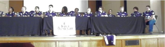 On Tuesday Feb. 15, Vinton-Shellsburg 2011 graduate and 2010 first-team All-District lineman Troy Hallberg attended a the Signing Day celebration for the football program at Iowa Wesleyan College in Mount Pleasant.