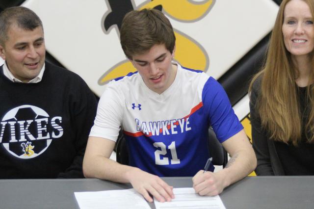 In a Friday morning ceremony in the Garrison fieldhouse, Vinton-Shellsburg soccer senior standout David Lapan-Islas signed his letter of intent to play soccer at Hawkeye Community College next season.