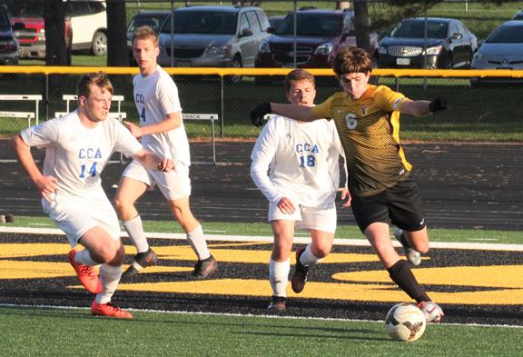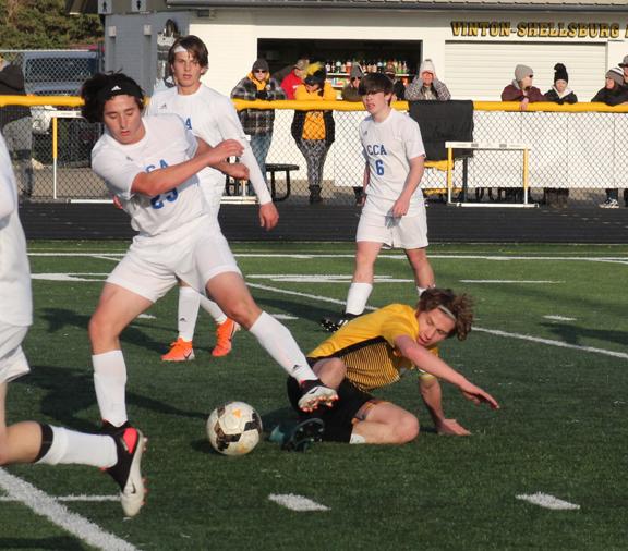 Amid a sea of flannel and camo, the Vinton-Shellsburg boys' soccer team honored a fallen teammate Thursday night with a dramatic 1-0 shutout of perennial power Clear Creek Amana at Karr Athletic Complex. The lone goal of the night came on a David Lapan-Islas penalty kick in the first half, but the difference in the contest came down to the Gold Rush defense.