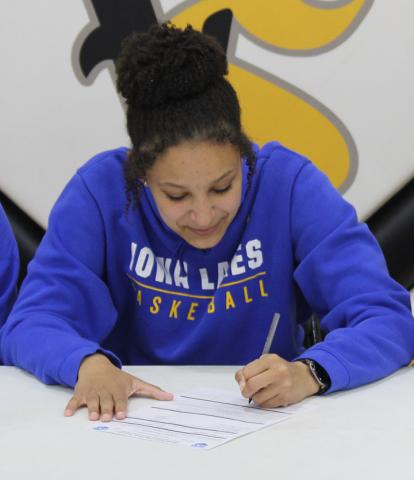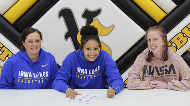 VINTON - Vinton-Shellburg girls' basketball senior Aza Swayzer made it official Wednesday, signing her letter of intent to play basketball at Iowa Lakes Community College in Estherville.