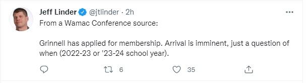 Cedar Rapids Gazette sports reporter Jeff Linder posted on Twitter this morning that "according to WaMaC Conference sources", the Grinnell Tigers will be joining the league as early as the fall of 2022.