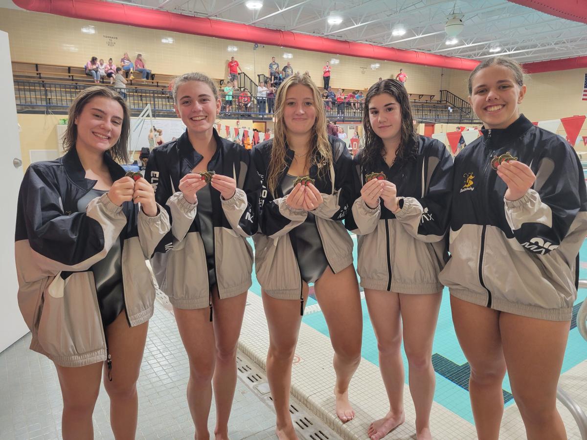 4 individual first place finishes were earned by Olivia Schminke, Justyce Dominick, and Carleigh Wilson - who also teamed up with Tori Elwick and Lauren Moore to bring home 2 more relay first places. We placed at least 1 swimmer in the top 3 in every event but one.