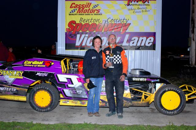 Scott Pippert won his fourth Hobby Stock feature in a row in Vinton on Sunday night, and Vinton's Scott Hogan returned to Victory Lane in the Modified feature.