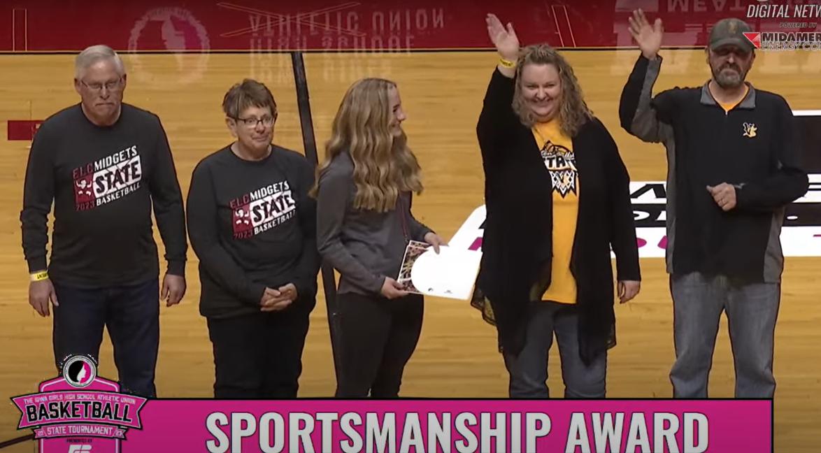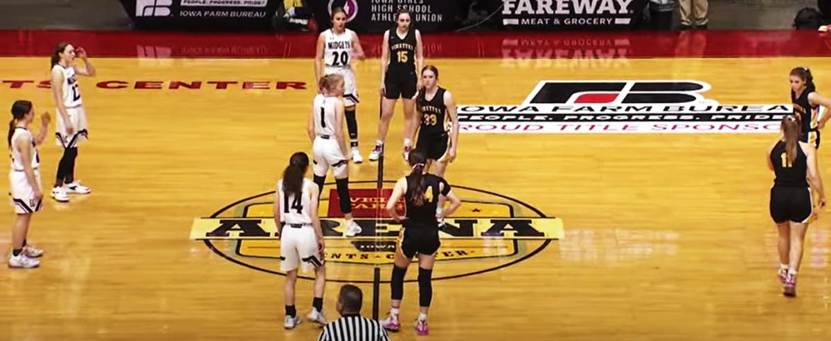 #8 seeded Vinton-Shellsburg took down the #1 seeded Estherville Lincoln Central and what a game!Before the game, Bart and Nick Bruce, were recognized by the team for their Sportsmanship. Also recognized as one of the sponsors of the games was Farm Bureau who has sponsored the games for the last 18 years.Farm Bureau provides a signature ball to each of the players as a souvenir to remember their accomplishments this year.
