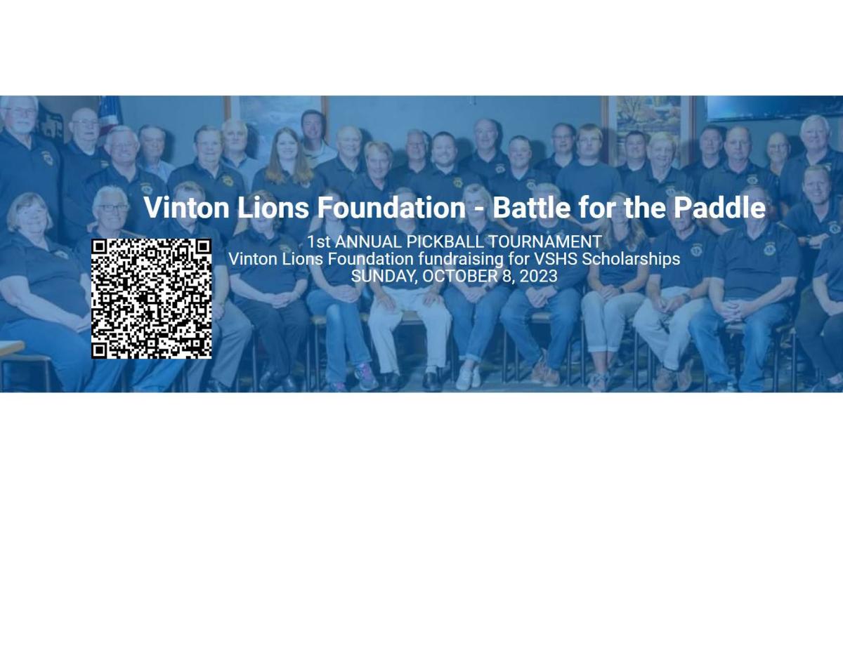 The Vinton Lions Foundation will hold its 1st Annual Pickleball Tournament, "Battle for the Paddle." A one day Pickleball Tournament with limited spots available, so it may fill up quickly!