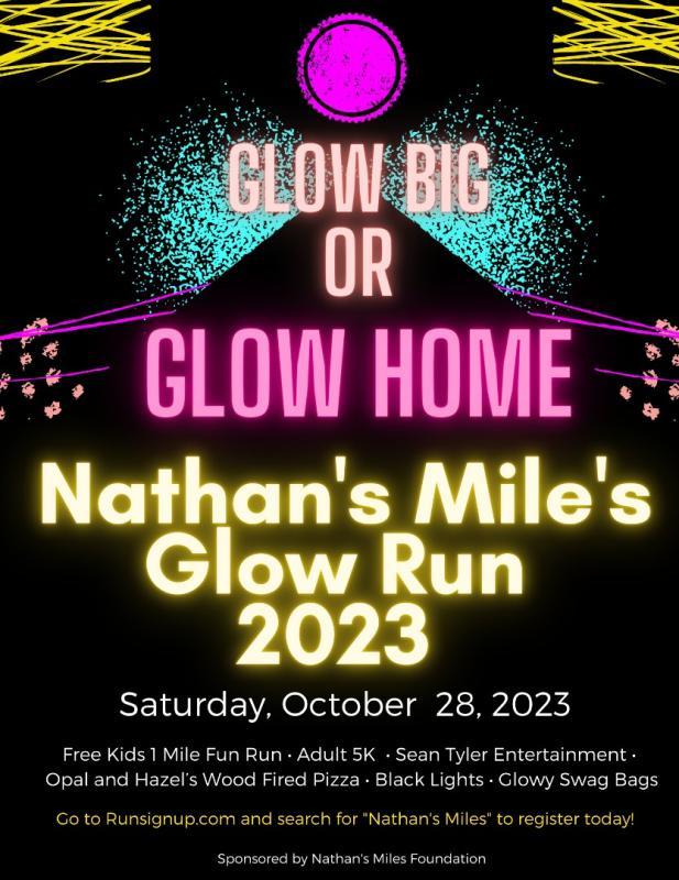 This Saturday, October 28, is the 3rd Annual Nathan's Miles Glow Fun Run 5K!!!