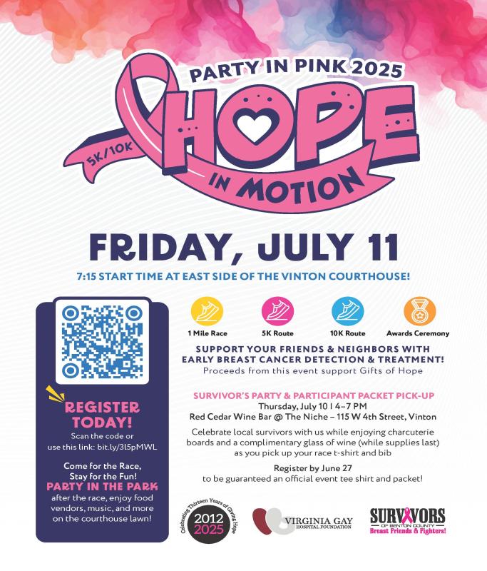 #PartyInPinkVinton #5KForHope #SupportBreastCancerAwareness #VintonIA #RunForACause